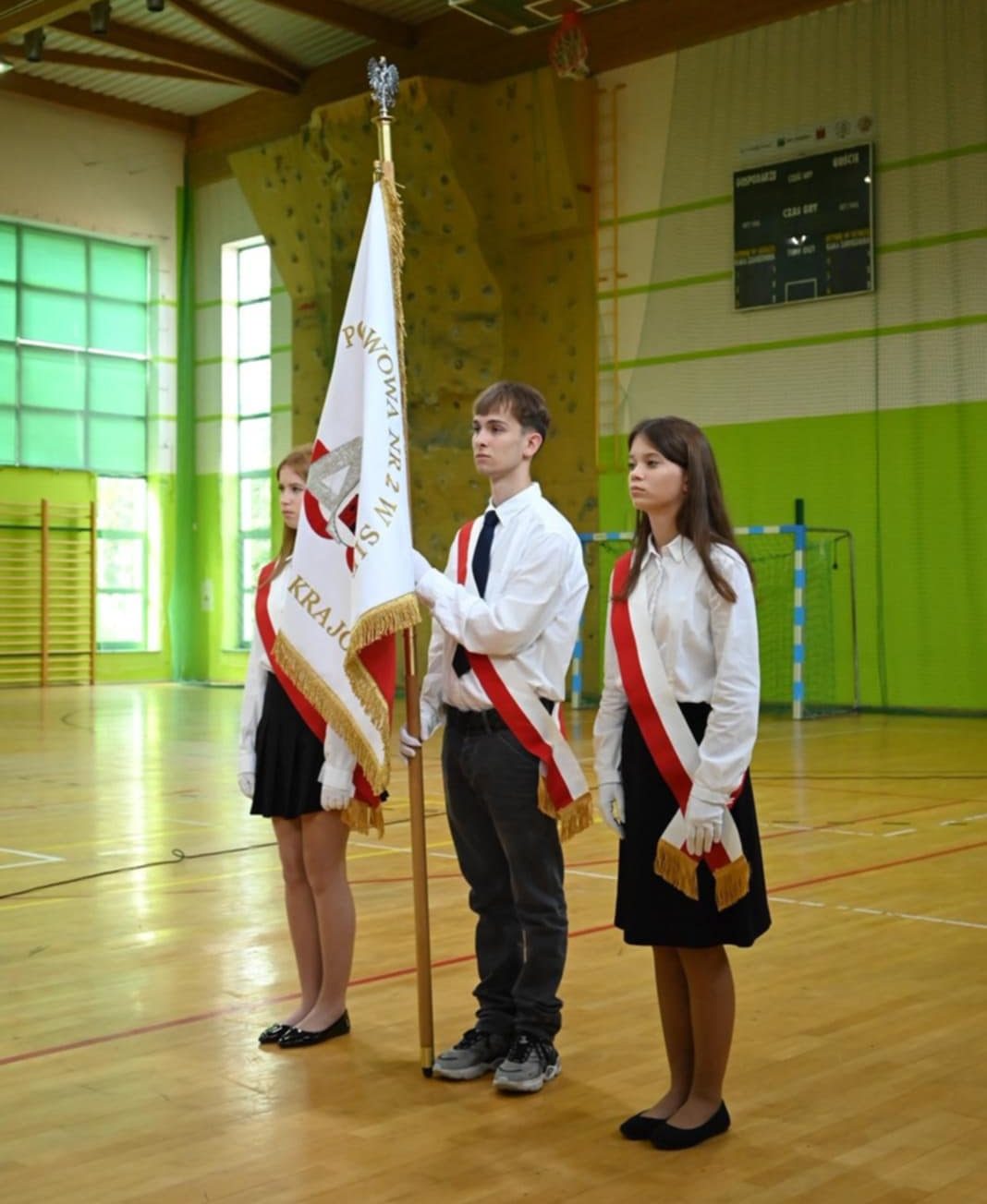 Chorąży: Oliwier Gąsiorowski kl. 8a, Patryk Chojnowski kl. 8b
